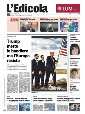 Giornalone.it è il portale italiano dove puoi leggere tutti i titoli dei giornali di oggi e consultare le prime pagine dei quotidiani nazionali, sportivi, economici, locali ed esteri del giorno. Fornisce le edizioni più aggiornate di ogni giornale e garantisce una rassegna stampa sempre attuale, mostrando i titoli di apertura di tutte le testate disponibili in edicola.