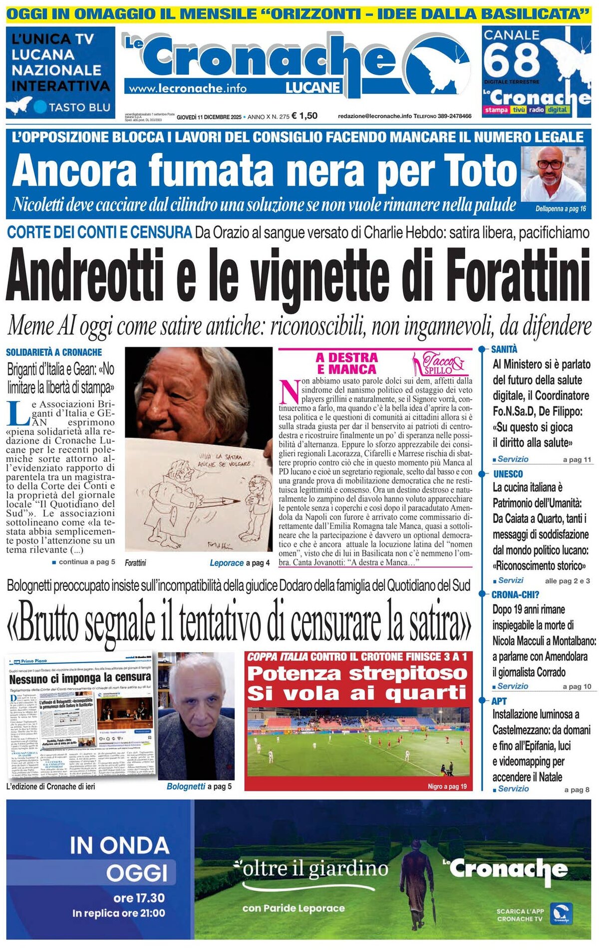 Le Cronache Lucane è un giornale locale italiano con le ultime news dalla redazione di Potenza, Basilicata.