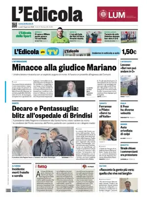 Giornalone.it è il portale italiano dove puoi leggere tutti i titoli dei giornali di oggi e consultare le prime pagine dei quotidiani nazionali, sportivi, economici, locali ed esteri del giorno. Fornisce le edizioni più aggiornate di ogni giornale e garantisce una rassegna stampa sempre attuale, mostrando i titoli di apertura di tutte le testate disponibili in edicola.