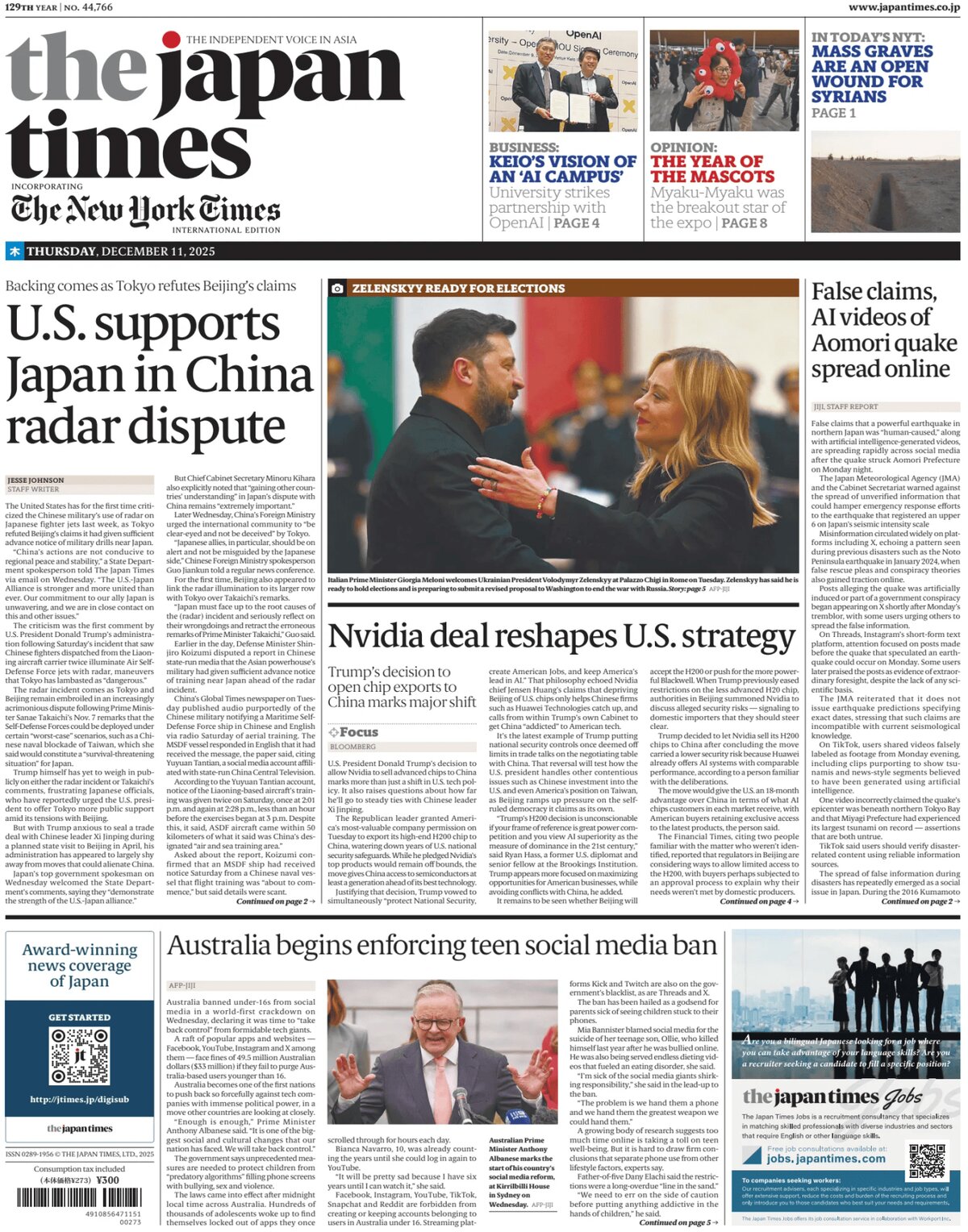 The Japan Times è un giornale estero con le ultime news dalla redazione di Tokyo, Osaka, Giappone.